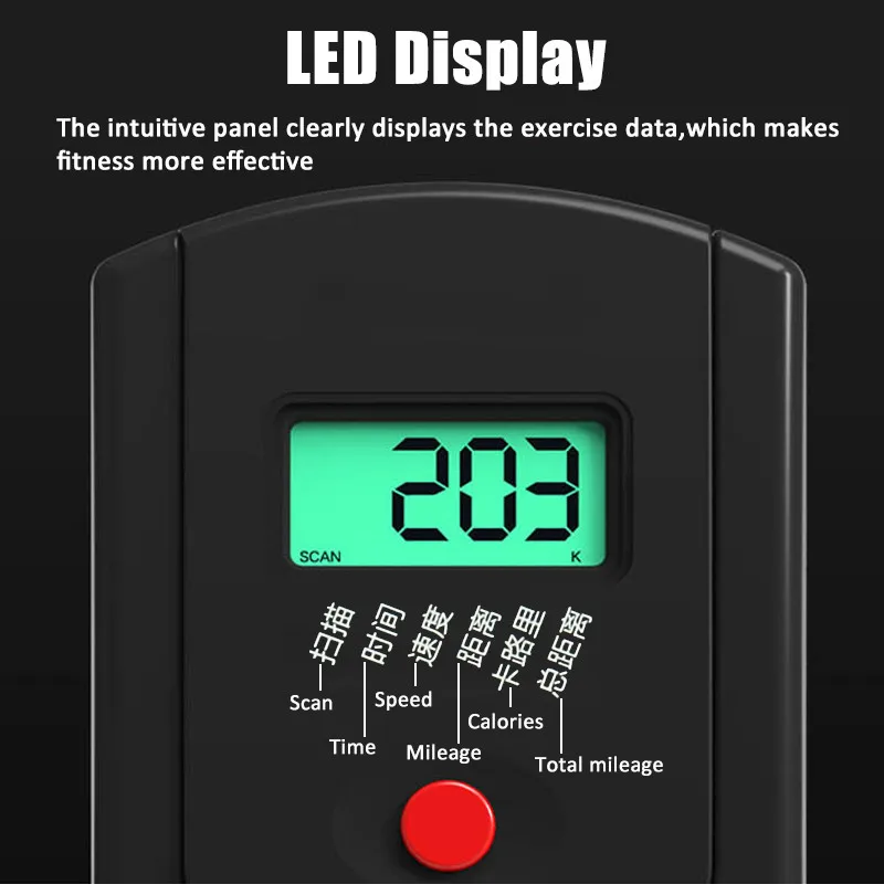 Large LCD panel shows distance, calories burned, time, speed and pulse.